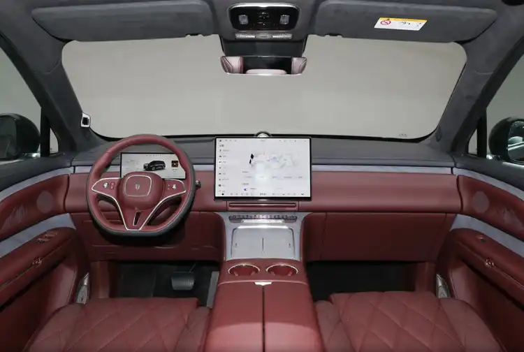No que diz respeito ao tamanho e ao espaço interno, o Taishan é posicionado como um SUV de grande porte, com dimensões de 5230/2025/1817 mm e entre-eixos de 3120 mm. Ele oferece uma configuração de seis lugares no formato 2+2+2. A segunda fileira possui assentos individuais com tela sensível ao toque, apoio para as pernas e alto-falantes no encosto de cabeça, claramente voltados para uso executivo de alto padrão e viagens familiares confortáveis.