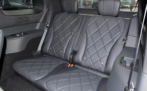 Na terceira fila, o Galaxy M9 não economiza: os bancos oferecem ajuste elétrico de até 150° e aquecimento, permitindo posição confortável mesmo para adultos de cerca de 1,75 m de altura. O comprimento útil interno chega a 3,7 m, com taxa de aproveitamento de espaço de 88,3%. Com todos os assentos ocupados, o porta-malas oferece 328 L, suficiente para 3 a 4 malas de 20 polegadas; com a segunda e terceira filas rebatidas, a capacidade chega a 2.171 L, acomodando facilmente objetos volumosos.