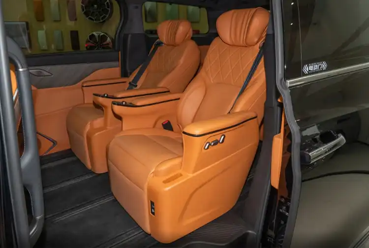 Como esperado de um MPV, o conforto dos assentos traseiros é uma prioridade. Diferente dos Gaoshan 8 e 9, o Gaoshan 7 substitui os assentos de “gravidade zero” por poltronas individuais reclináveis com apoios de braço ajustáveis. No entanto, as funções de massagem e ajuste elétrico da terceira fileira foram removidas — embora os bancos de gravidade zero permaneçam disponíveis como opcionais.