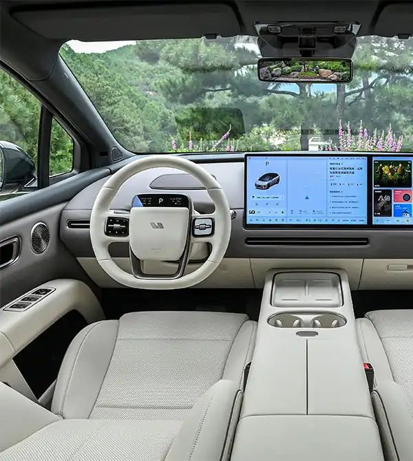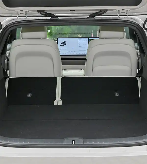 O Li i6 interior eleva o conforto familiar. O habitáculo dispõe de duas ecrãs OLED de 15,7 polegadas com o chip Qualcomm 8295P, oferecendo resposta por voz em 0,8 s. O console central introduz porta-copos ovais e dois carregadores sem fios de 50W, mais práticos para uso por várias pessoas do que o design cilíndrico do Li i8. Os bancos traseiros estilo “queen” com comando elétrico podem incluir ventilação, aquecimento, massagem e apoio de pés ajustável; com 3.000 mm de entre-eixos e mais de 1 m de espaço para as pernas, a segunda fila atinge conforto de primeira classe. O ecrã traseiro de 21,4” com Dolby Vision 3K e suporte para jogos, juntamente com o frigorífico de duas zonas de série, reforçam a praticidade premium. Em várias Li i6 review, o espaço interior superior a 3,3 m e o porta-bagagens de 650 L são elogiados como “as dimensões ideais para viagens em família”. Com a função V2L de 3,5 kW, o Li i6 adapta-se perfeitamente a acampamentos e usos diversos.