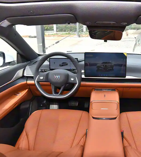 O Buick Electra L7 2025 Premium Edition exala uma aura futurista e luxuosa: a frente de inspiração sci-fi combina com o conjunto de faróis LED “Asa Galáctica”, com efeitos de luz dinâmicos de alto reconhecimento. A carroceria alongada destaca linhas fastback elegantes, enquanto portas sem moldura e rodas de baixo arrasto aumentam a sensação de movimento. Na traseira, o amplo corpo apresenta lanternas contínuas e um spoiler tipo cauda de pato, com detalhes meticulosamente trabalhados que demonstram sofisticação no design. Quer sentir esta experiência estética de perto? Entre em contato para descobrir mais.