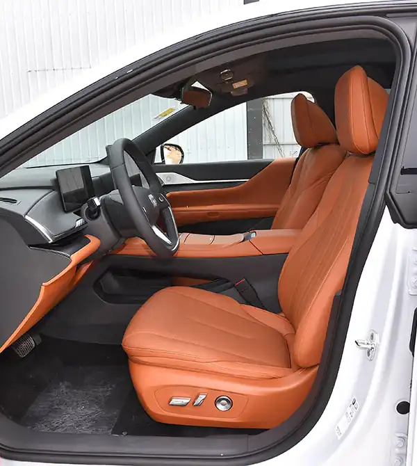 O interior segue o conceito “Ilha Flutuante Pura”. As três telas — central de 15,6", painel digital de 10,25" e AR-HUD panorâmico de 50" — criam uma cabine totalmente digital. O acabamento metálico “Areia Galáctica” e os assentos de couro Nappa proporcionam uma sensação de luxo e conforto. O banco do passageiro possui sistema duplo de gravidade zero de 120°, apoio de pernas elétrico de 103 mm e massagem de 8 pontos. O amplo entre-eixos de 3.000 mm garante espaço líder na categoria, enquanto os assentos traseiros Surflex™ com reclinação elétrica oferecem conforto superior.