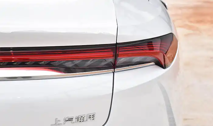 Na traseira, o design se baseia em três pilares: largura, camadas e tecnologia. As lanternas contínuas possuem estrutura luminosa tridimensional, e a “Luz Azul Inteligente” central acende com efeito respiratório quando a condução autônoma é ativada. O spoiler tipo cauda de pato e o difusor inferior otimizam o fluxo de ar, enquanto os acabamentos cromados do escape oculto mantêm o DNA robusto da marca.