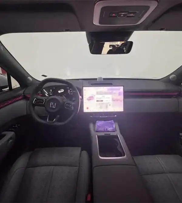 O interior é feito com materiais sustentáveis e reciclados, complementado por uma tela central rotativa de 15,4 polegadas e cockpit inteligente ZEEKR OS, com interação por voz em todos os cenários. Com um grande teto panorâmico e sistema de som de 21 alto-falantes, o veículo oferece uma experiência imersiva dentro do carro.