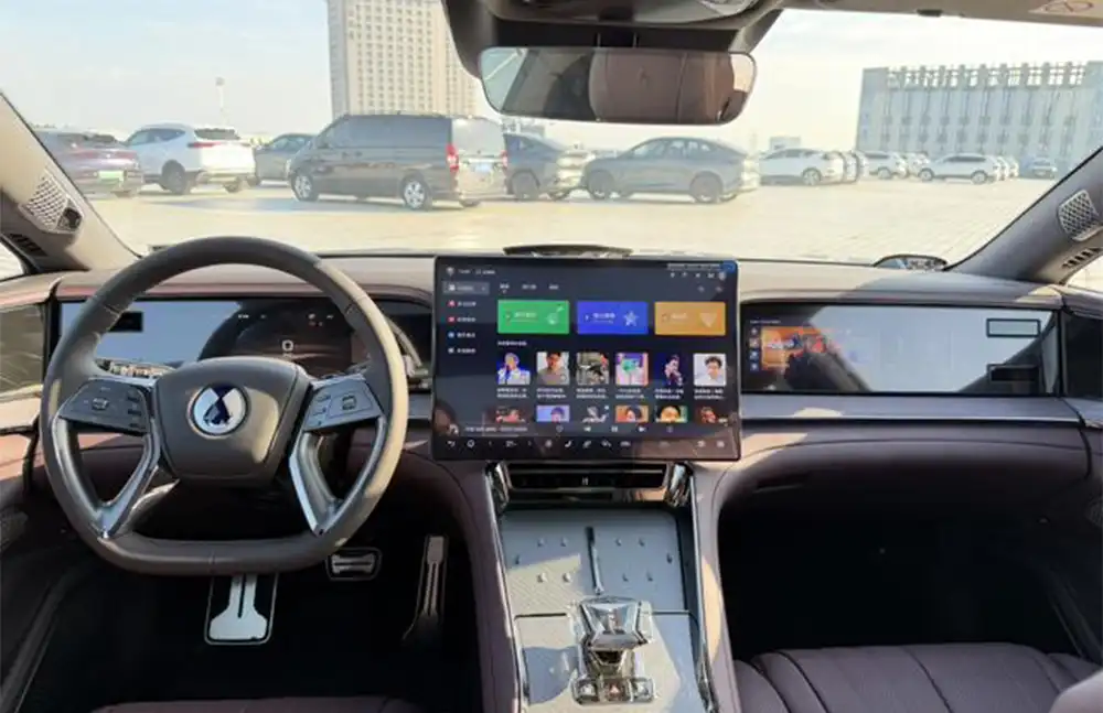 Configuração Inteligente Configuração Inteligente Equipado com o avançado sistema de condução inteligente ‘Divine Eye’, que inclui um cockpit e sistema de visualização inteligentes: o interior adota um design envolvente, incorporando um painel de instrumentos totalmente digital, uma grande tela de controle central e uma tela de entretenimento para o passageiro. Sistema de assistência à condução inteligente + Cloud Chariot: oferece um raio de giro excepcional, capacidade de inclinação lateral de 15° e controle de estabilidade em caso de estouro de pneus em alta velocidade.