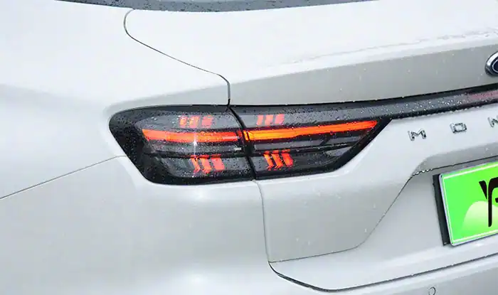 Na lateral, o Ford Mondeo 2026 adota um estilo coupé com perfil fluido, curta projeção dianteira e maior balanço traseiro. A linha lateral contínua vai do para-lama dianteiro até as lanternas traseiras, enquanto maçanetas embutidas e rodas multirraiadas de 19 polegadas reforçam a aerodinâmica e o caráter esportivo. Em termos de dimensão, o modelo mede 4935/1875/1500mm com distância entre eixos de 2945mm, garantindo excelente espaço interno para uso familiar e forte apelo para consumidores jovens.
