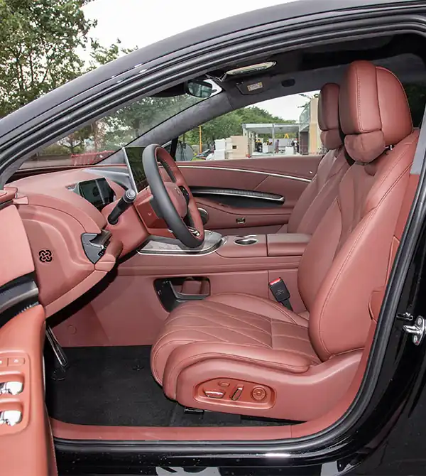 O GAC Hyptec A800 2026 Intelligent Premium Edition impressiona pelo design exterior altamente reconhecível. A dianteira apresenta a faixa luminosa Shanhai de 6 metros juntamente com faróis rotativos tridimensionais, combinando tecnologia com um forte senso de cerimônia. As linhas fastback da carroceria são suaves e elegantes, enquanto as maçanetas ocultas reforçam o estilo minimalista. Na traseira, as lanternas LED contínuas de três camadas e o spoiler tipo ducktail criam um visual elegante e esportivo, unindo sofisticação executiva ao charme de um cupê.