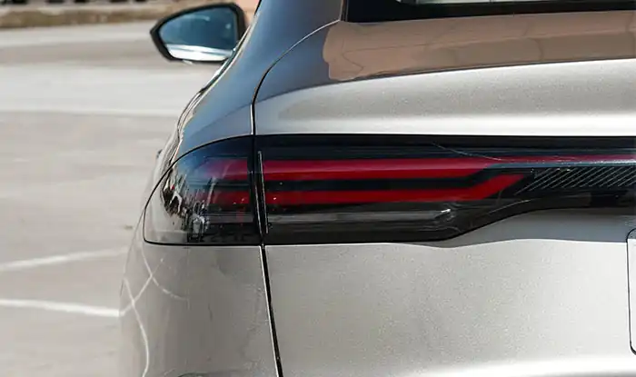 O design traseiro faz eco perfeito com o dianteiro, com um estilo geral conciso e completo, mas que esconde camadas ricas. O pequeno alerão na parte superior não só otimiza o desempenho aerodinâmico, mas também adiciona um toque esportivo à traseira. O farol traseiro contínuo é um design mainstream hoje em dia, integrando elementos de "padrão de ondulações". Ao se acender, ele se assemelha a ondulações que se propagam camada por camada na superfície da água, formando um loop de design fechado com a grade dianteira, e a reconhecibilidade noturna é total. O para-choque inferior adota a mesma cor do corpo do carro, combinado com uma disposição de escapamento oculto, realçando a textura minimalista de veículos de energia nova. A moldura de cromo no para-choque traseiro se estende horizontalmente e se conecta aos faróis traseiros, alargando visualmente a largura da traseira e tornando a proporção geral do carro mais equilibrada. Em comparação com o design traseiro superficial comum em modelos concorrentes, o acabamento detalhado do Geely Galaxy Starshine 6 demonstra plenamente a sinceridade do design.
