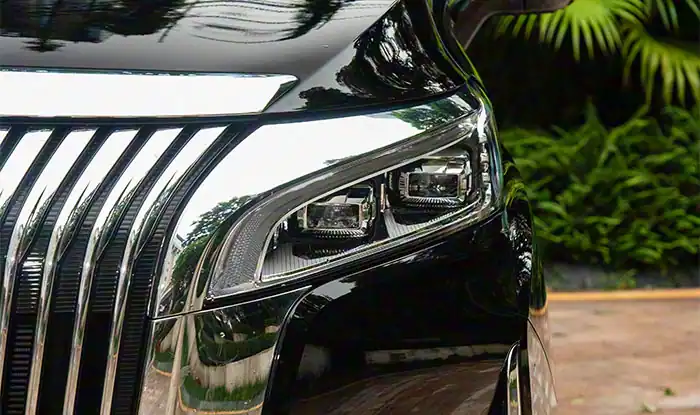 No design exterior, o GWM WEY Gaoshan 7 2025 segue a linguagem “Montanha e Água Corrente” característica da marca. A grande grade cromada de trama densa conecta-se de forma contínua com os conjuntos ópticos escurecidos; as lâminas verticais lembram cascatas, transmitindo a imponência de um MPV executivo e, ao mesmo tempo, quatro tonalidades — entre elas Preto Espaço e Verde Canglang — ajustam-se ao gosto estético das famílias. O para-choque dianteiro adota um desenho de três canais de orientação do fluxo, com acabamentos cromados em alto brilho, que reduzem o arrasto e enriquecem as camadas visuais da dianteira. O LiDAR integrado ao teto indica discretamente capacidade avançada de condução inteligente; o conjunto interpreta com fidelidade a essência do design “sutileza com conteúdo”.