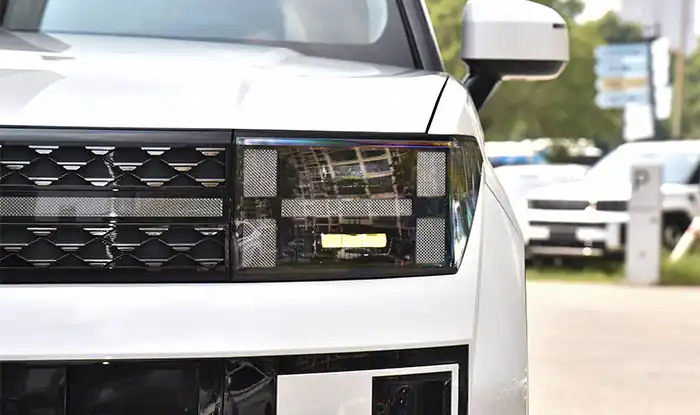 O caráter essencial de um SUV robusto é plenamente expresso na lateral. Os para-lamas alargados, combinados com as rodas de 19 polegadas em dois tons, desenham linhas musculosas e cheias de força. O arranjo matricial interno dos faróis divididos garante iluminação precisa e reforça ainda mais a identidade visual do veículo. Além disso, o Santa Fe adota um design de balanços curtos com “quatro rodas nos cantos”, aliado a 4.830 mm de comprimento, 1.780 mm de altura e 1.900 mm de largura, evidenciando claramente as vantagens das 2026 hyundai santa fe dimensions. Isso cria uma presença visual sólida, semelhante a uma “fortaleza em movimento”, ao mesmo tempo em que otimiza o aproveitamento do espaço interno.