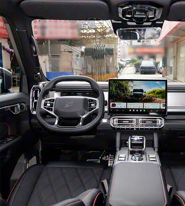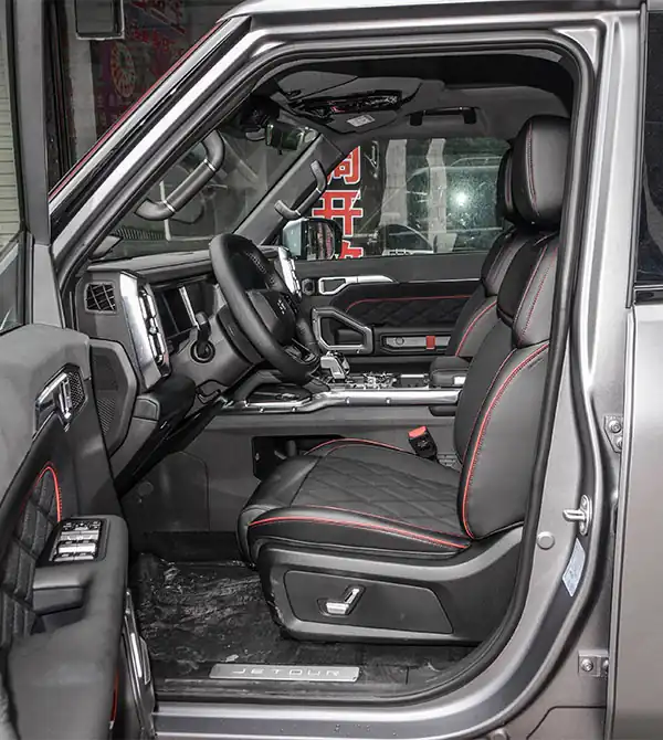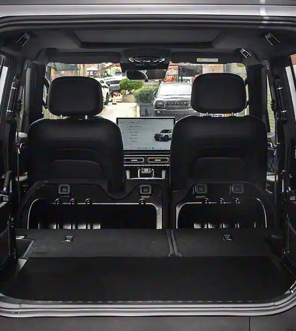 O design traseiro também impressiona: lanternas traseiras em estilo cascata vertical oferecem alta visibilidade em condições adversas, enquanto a porta lateral assistida e o espaço de carga flexível garantem conveniência. O engate de reboque e as placas de proteção mantêm o estilo off-road, enquanto a nova pintura fosca Deep Sea Blue e as opções de cores 5+2 atendem preferências personalizadas. As placas de proteção prateadas complementam o design frontal, expressando perfeitamente a essência de um SUV robusto.