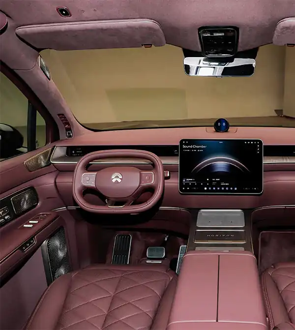 Como modelo flagship, o ES9 NIO não economiza em equipamentos. Está equipado com o assistente inteligente NOMI Mate 3.0 e um refrigerador automotivo com compressor. O primeiro responde com precisão a comandos de voz, liberando as mãos do usuário, enquanto o segundo permite desfrutar de bebidas geladas a qualquer momento, elevando significativamente o conforto e a conveniência da cabine.