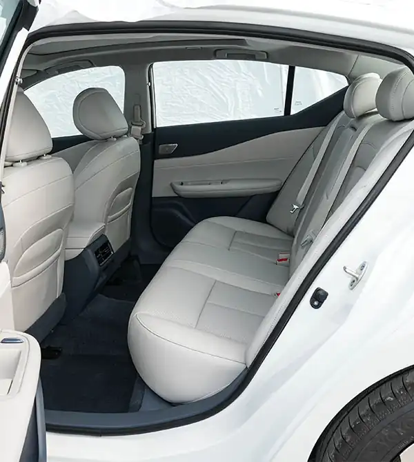 Ao entrar no carro, o conceito de “conforto + inteligência” é evidente. O painel revestido em materiais macios com costura refinada transmite uma sensação aconchegante e sofisticada. Como herdeiro do conceito de “sofá móvel”, o espaço interno segue excelente: o teto solar panorâmico amplia a sensação de abertura e passageiros de até 1,80 m continuam confortáveis no banco traseiro. Um ocupante de 1,75 m no banco dianteiro dispõe de cerca de dois punhos de espaço livre para cabeça; no banco traseiro, há cerca de um punho no topo e mais de dois nas pernas — suficiente para passageiros altos manterem posição confortável. O porta-malas de 586 litros atende perfeitamente às necessidades cotidianas e viagens longas.