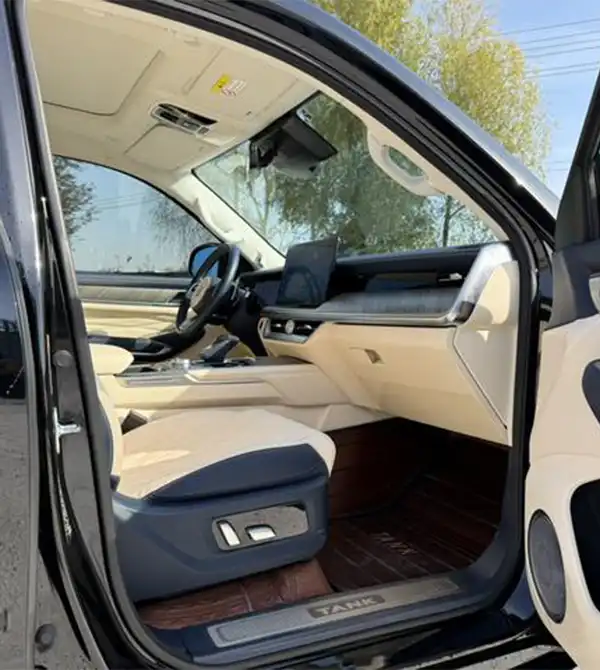 Apresentamos um SUV robusto e de excelente custo-benefício — o Tank 500 2022 Business Edition Zaojing 5 lugares. Em comparação com outros veículos da mesma categoria, suas vantagens são evidentes. Enquanto alguns concorrentes têm interiores simples e pouco espaço, o Tank 500 oferece amplo espaço interno e um acabamento sofisticado em tons claros, com artesanato refinado e uma cabine limpa e elegante — a diferença é perceptível assim que você entra.