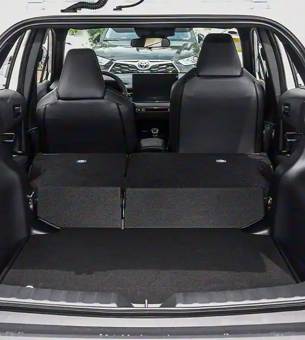No interior, o Toyota Frontlander 2026 abandona o estilo “nu” da versão anterior, com melhorias em materiais e design que criam uma cabine luxuosa. O painel apresenta um novo design de dobras suaves, com materiais macios cobrindo áreas-chave como o painel de instrumentos e o volante. As saídas de ar finas reduzem a sensação visual de volume. Os bancos dianteiros foram redesenhados para melhor suporte lombar e lateral. A cabine é complementada por iluminação ambiente de 64 cores e carregamento sem fio de 50W. A tela central flutuante de 12,9 polegadas com chipset Qualcomm Snapdragon SA8155P suporta CarPlay, HUAWEI HiCar 5.0 e ICCOA Carlink, complementada por painel digital de 8,8 polegadas e sistema inteligente de interação por voz, formando um ecossistema completo de cockpit inteligente. A distância entre eixos de 2640 mm garante amplo espaço para as pernas na parte traseira, com assentos otimizados proporcionando conforto excepcional em longas viagens.