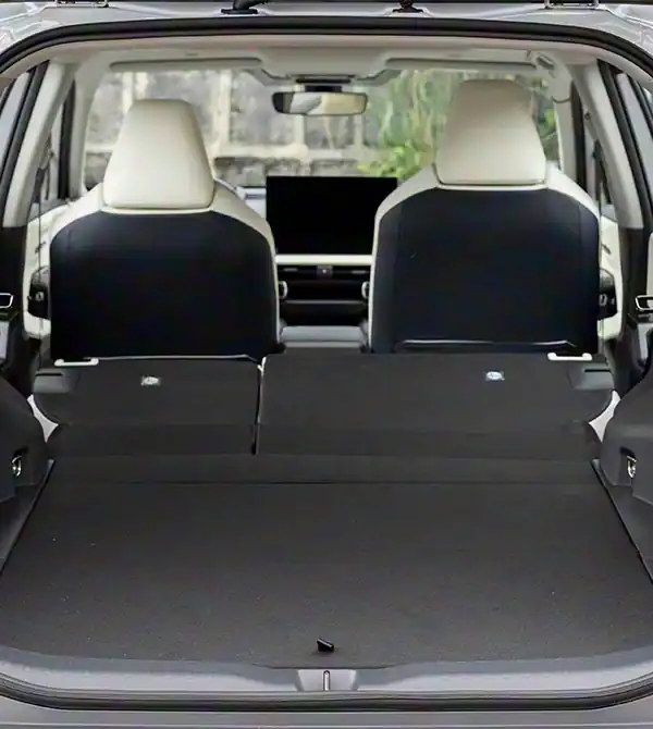 O porta-malas oferece 580 L de capacidade, suficiente para malas, carrinhos de bebê e equipamentos de camping. Com os bancos rebatidos, o espaço chega a 1690 L. Há até 12 espaços de armazenamento pela cabine, como porta-objetos, porta-copos e compartimentos nas portas.