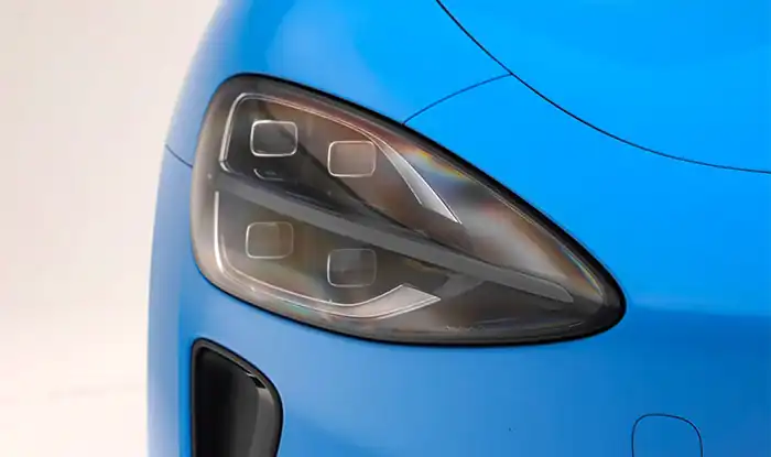 Ao observar de perto o design exterior do Xiaomi SU7 2026, percebe-se que a estética fluida característica da marca foi mantida. A presença geral do veículo continua marcante, enquanto ajustes refinados nos detalhes tornam este popular coupé elétrico ainda mais sofisticado. A dianteira mantém o design de grade fechada, com radar de ondas milimétricas integrado de forma discreta no centro. A superfície recebe um acabamento com textura delicada, preservando a sensação de unidade e elevando a atmosfera tecnológica. Os clássicos faróis em formato de gota foram mantidos, agora atualizados com iluminação LED matricial, com alcance de até 400 metros no farol alto. Combinados com o sistema adaptativo de farol alto/baixo, aumentam significativamente a segurança na condução noturna. O acabamento escurecido dos faróis reforça ainda mais o caráter esportivo.
