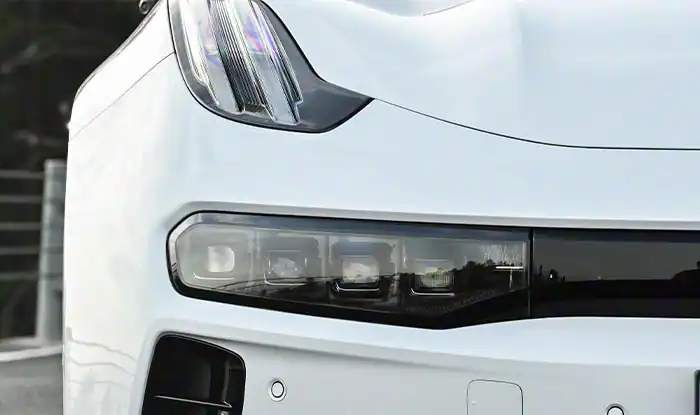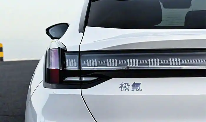 O Zeekr 001 2026 destaca-se pelo seu design marcante e facilmente reconhecível. A dianteira adota o exclusivo kit de desempenho FR, com um lábio dianteiro em fibra de carbono e uma grelha trapezoidal que formam um visual agressivo de “boca grande”. Os faróis LED matriciais intensificam o caráter esportivo, enquanto as entradas de ar laterais melhoram a aerodinâmica, reduzem o arrasto e aumentam a estabilidade em alta velocidade. O radar a laser, presente em toda a linha, está discretamente integrado na parte superior do para-brisa, unindo estilo esportivo e tecnologia sem comprometer as linhas elegantes da carroceria. As luzes diurnas em formato “olhos de rã” mantêm-se, com múltiplas fontes de luz e efeito dinâmico de boas-vindas, garantindo grande destaque à noite.